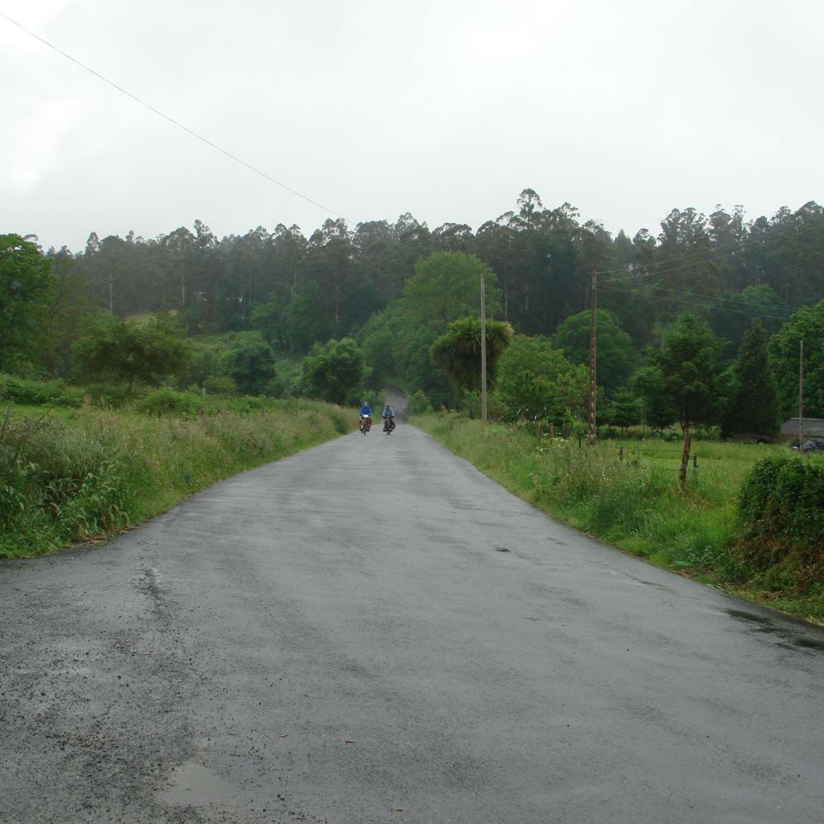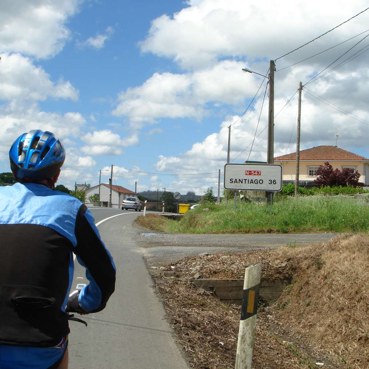 Alweer regen terwijl toch goed weer werd verwacht. Om 12 uur was het eindelijk droog. Ca. 30 km voor Santiago echter nog geen slaapplaats gevonden. Weer verder gereden en wederom niets gevonden. Dit werd een probleem. We hebben daarna het ontvangstcomite maar gebeld en gezegd dat we die dag zouden aankomen, er was nl. geen slaapplaats te vinden. Ook niet volgens de lokale bareigenaar. De slaapplaatsen waren al geregeld, dus dat was geen probleem. Rond 17.30 hebben we na 2308 km gereden te hebben Santiago de Compostella bereikt. Eindelijk gehaald. Iedereen stond te wachten op het plein bij de kathedraal. Het was een emotioneel weerzien voor iedereen. Alles was oranje met slingers en toeters. Het is ook onbeschrijfelijk wat er met je gebeurd wanneer je na een lange tocht en na zoveel voorbereiding het plein van de kathedraal op rijd. Een geweldig gevoel dat hoogstwaarschijnlijk nog lang zal duren.